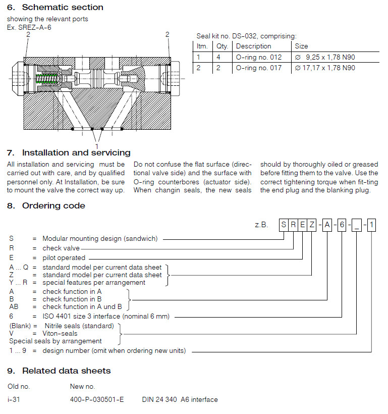 SREZ-A-6-1,SREZ-B-6-1,SREZ-AB-6-1,SREZ-A-6-V-1,SREZ-B-6-V-1,SREZ-AB-6-V-1,Bucher模塊安裝止回閥 |