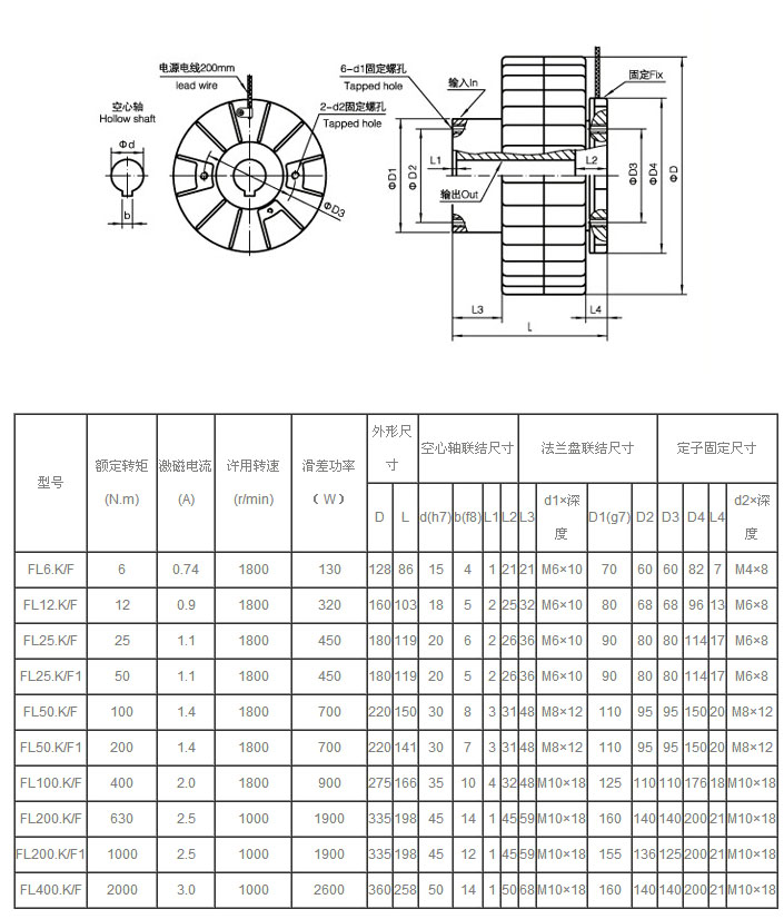 FL6.K/F,FL12.K/F,FL25.K/F,FL25.K/F1,FL50.K/F,FL50.K/F1,FL100.K/F,FL200.K/F,磁粉離合器