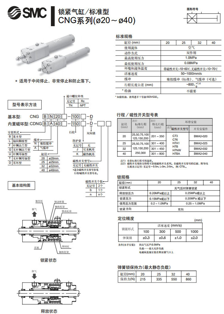 CDNGBN20,CDNGLN20,CDNGFN20,CDNGGN20,CDNGUN20,CDNGTN20,CDNGDN20,CDNGBN20-25,CDNGBA20-25,SMC標準型鎖緊氣缸