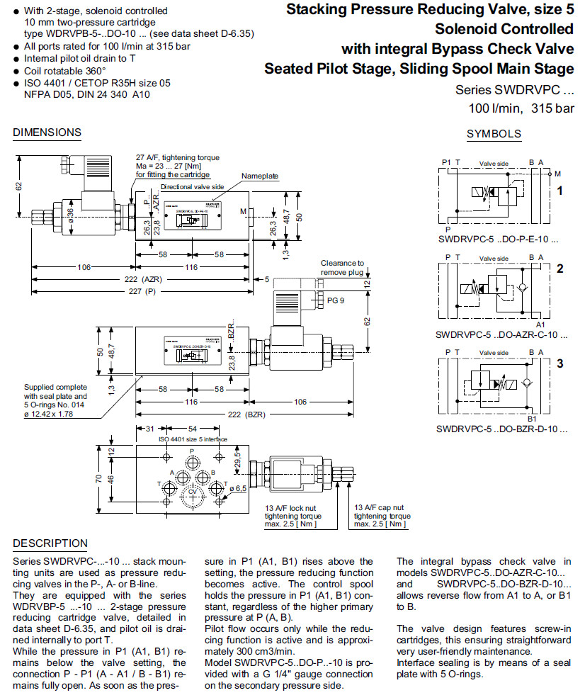 SWDRVPC-5NDO-PR-E-10,SWDRVPC-5MDO-AZR-C-10,SWDRVPC-5LDO-BZR-D-10,Bucher減壓閥