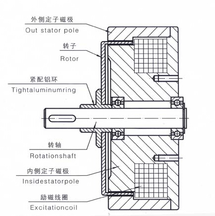 磁滯制動器由轉(zhuǎn)子和定子磁極兩大部分組成,轉(zhuǎn)子由特殊的磁滯材質(zhì)制成,內(nèi)、外側(cè)定子磁極之間有一定的間隙,轉(zhuǎn)子在間隙中轉(zhuǎn)動。當(dāng)線圈通電時,間隙中產(chǎn)生磁場,是轉(zhuǎn)子產(chǎn)生磁滯效應(yīng)。當(dāng)磁滯轉(zhuǎn)子在外力作用下克服磁滯力轉(zhuǎn)動時,也可通過減速機測試產(chǎn)生額定的扭矩。扭矩僅與激磁電流大小有關(guān),與轉(zhuǎn)速無關(guān),實現(xiàn)非接觸的扭矩傳輸。