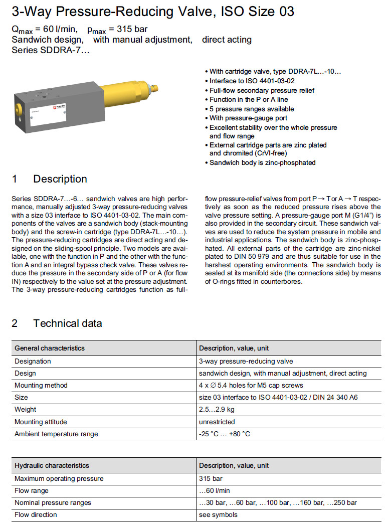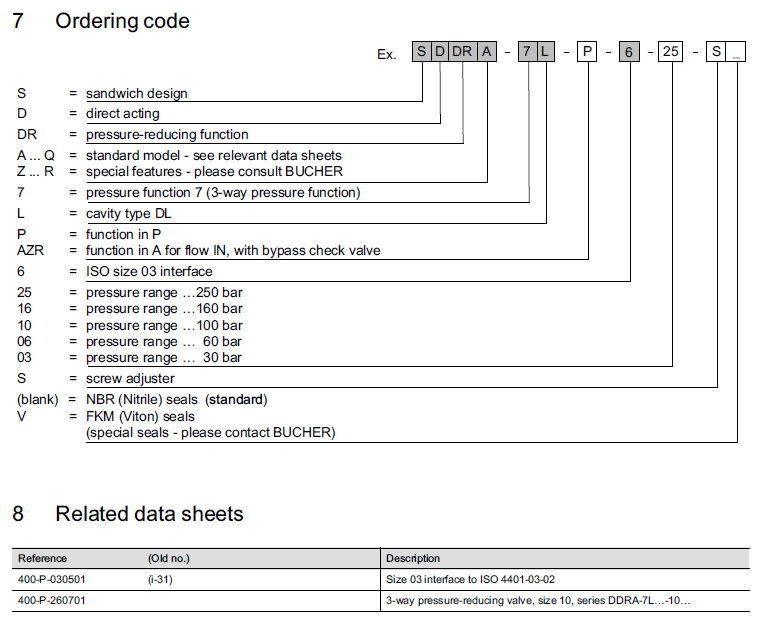 SDDRA-7L-P-6-25,SDDRA-7L-P-6-16,SDDRA-7L-P-6-06,SDDRA-7L-P-6-10,Bucher減壓閥 |