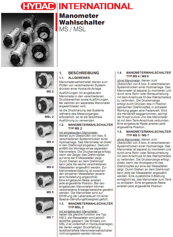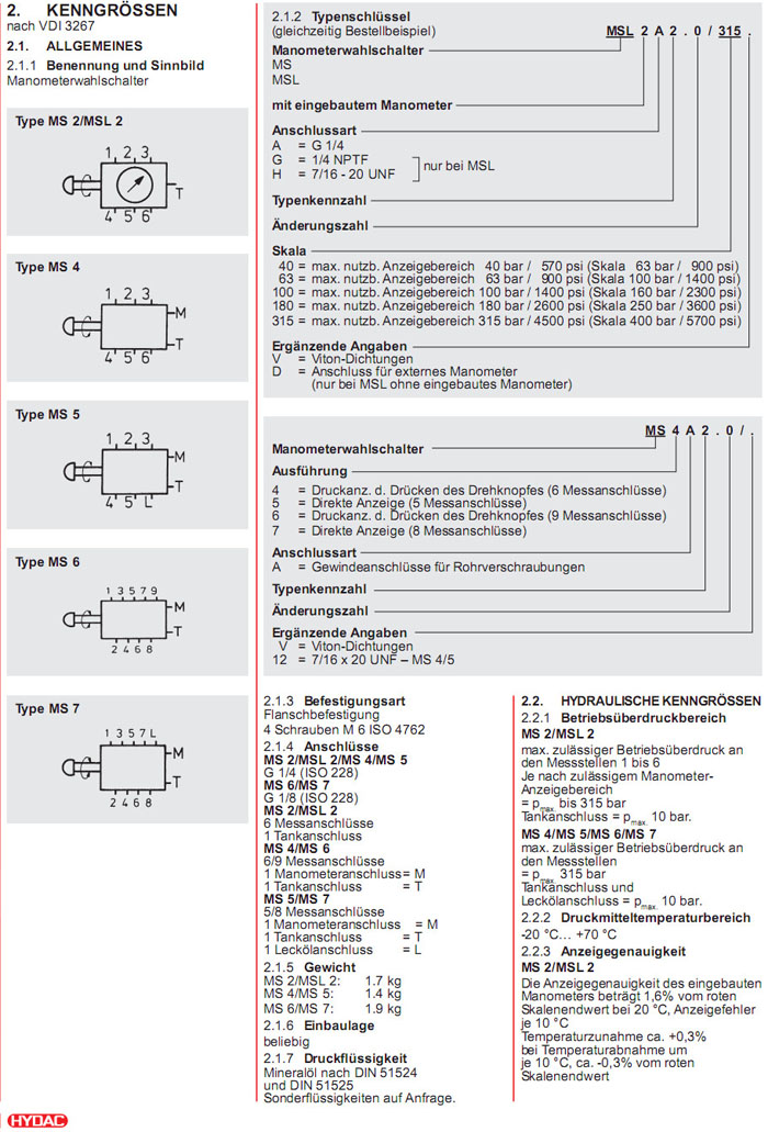 MSL2A2.0/40,MSL2A2.0/63,MSL2A2.0/100,MSL2A2.0/180,MSL2A2.0/315,HYDAC壓力表