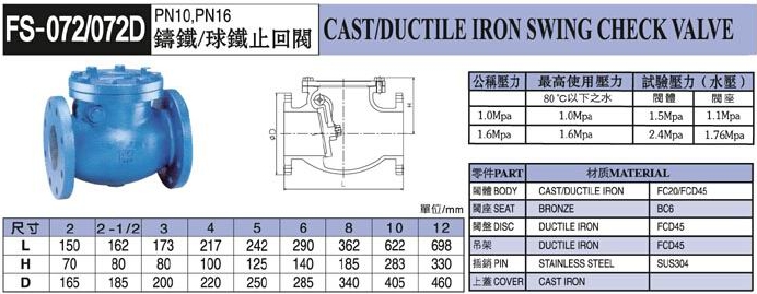 FS-072,FS-072D,鑄鐵止回閥