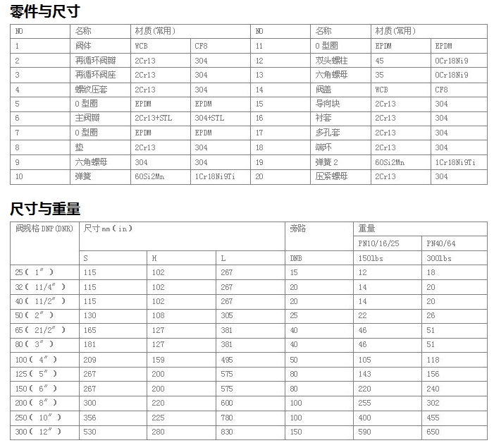 其它旁路尺寸可按要求制作;最大的旁路流量取決于最大的Kv值