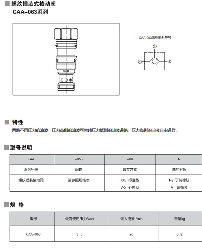 CAA-063-XXN,CAA-063-XXV,CAA-063-VXN,CAA-063-VXV,螺紋插裝式梭動(dòng)閥