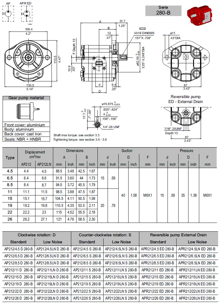 AP212/4.5,AP212/6.5,AP212/8.5,AP212/11,AP212/15,AP212/22,Bucher外嚙合齒輪泵