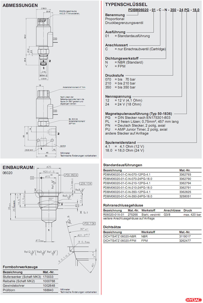 PDBM06020-01-C-N-070-12PG-4.1,PDBM06020-01-C-N-070-24PG-18.0,PDBM06020-01-C-N-210-12PG-4.1,HYDAC比例溢流